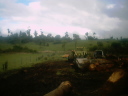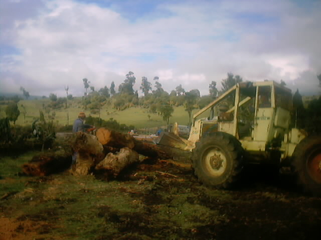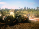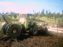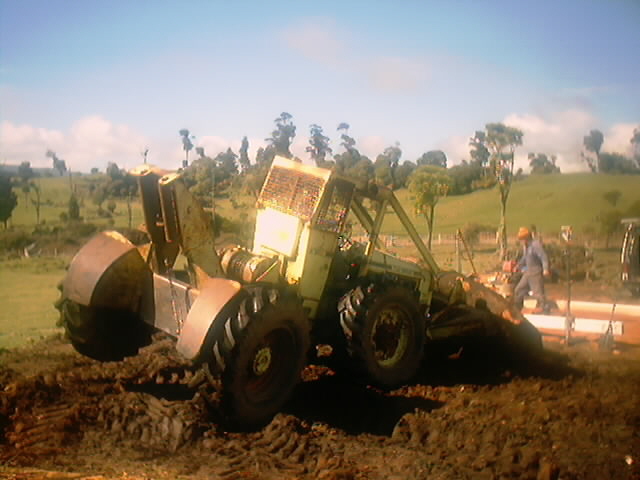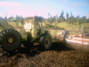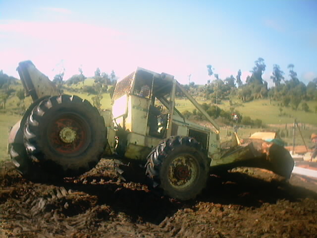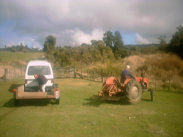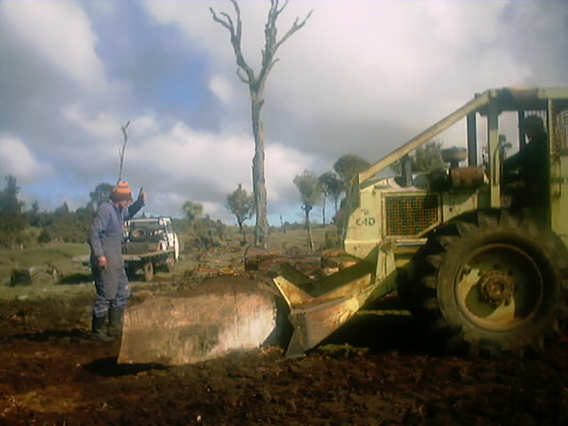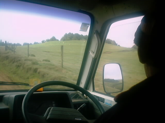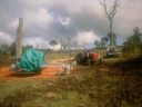 | 一時間のドライブ後、深いぬかるみの少し手前でローリーがトラクターに分乗、どちらも四駆、 スタックした時の為に一台はドーしてもトラクターが必要。 |
