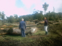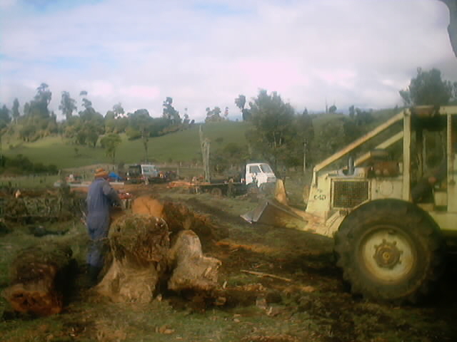 | 130年程前に初期の入植者達が開いた農場。 当時の木こりさん達は大きな手引きノコギリを二人、又は四人引きで巨木を倒して農地として開拓。 今でも大きなノコギリの歯形を切り株に多く見る事が出来ます。 |