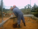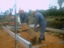 | リムーを持ち上げ様としているのですが、バランスが余り良く無い状態で持ち上げたので、 この直後落下危機一発!、イーァンが下敷きにと言う大事故に なっている処でしたが。 そこは、プロの仕事なのでしょうあわてず20センチ位ピョンと避けただけで、 何事も無かったかの様にそのまま続行。 |