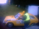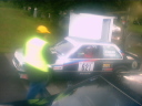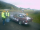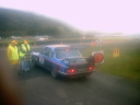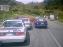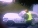 | 私たちの走行距離は2300Km、51SPECIAL STAGE 654.60Km、のコースに面している総てのゲート、家のゲート、 農場のゲートに安全をうながす黄色のリボンをレースより1コース早くテーピングする作業で、 テープの使用距離数はOFFICIAL4台合計16000m、家から家までの距離が比較的に長いローカルで安全性の高いコースを 使用しているので、4台の車で大きくウサギ跳びをして12500の各ゲートにテーピングをして行く常に交通事故の危険を 伴う作業でベストなチームワークと集中力と強靱な体力を必然的に要求される縁の下の作業。 |